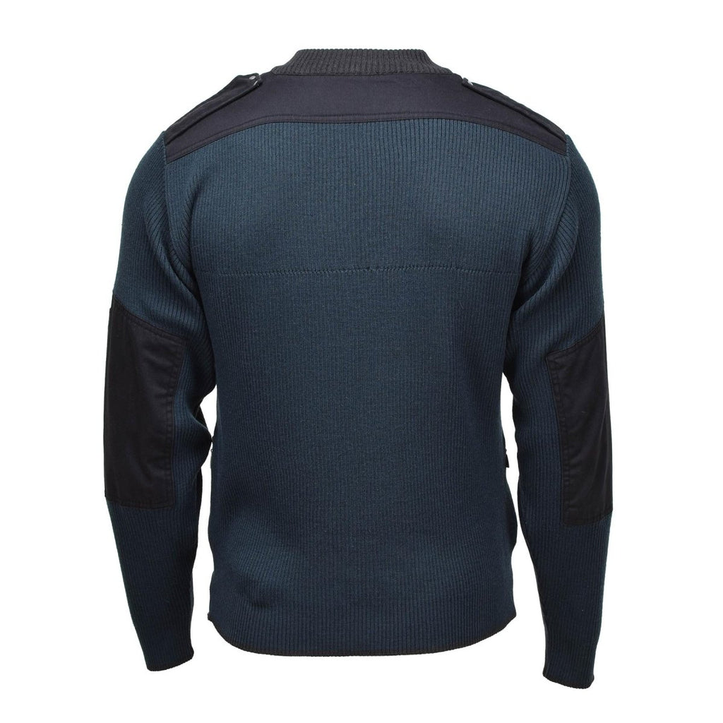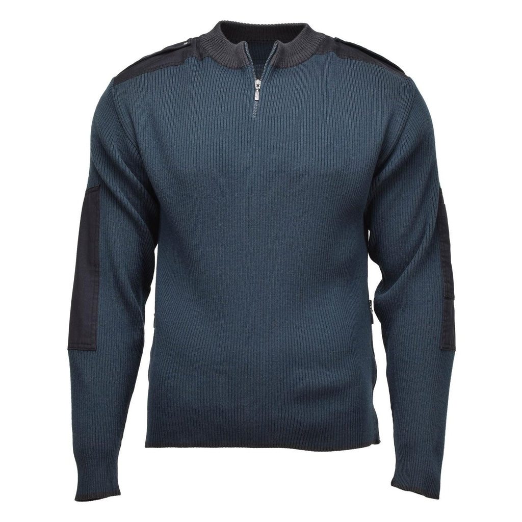 Un maglione blu per la stagione fredda in vero pullover militare troyer militare olandese lavorato a costine è un tipo di maglione progettato per tenerti al caldo in condizioni di tempo freddo. Solitamente ha una trama a coste, che rende il maglione elastico e flessibile, ed è realizzato in materiale misto lana.