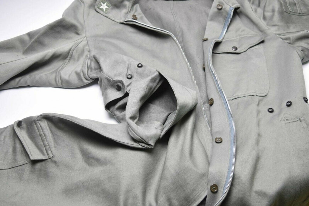 Vera tuta dell'esercito italiano grigio militare in un sorprendente grigio militare, una nuova aggiunta alla nostra collezione di surplus militare. Questa tuta è una testimonianza dell'eccellenza militare italiana nel design e nell'artigianato.