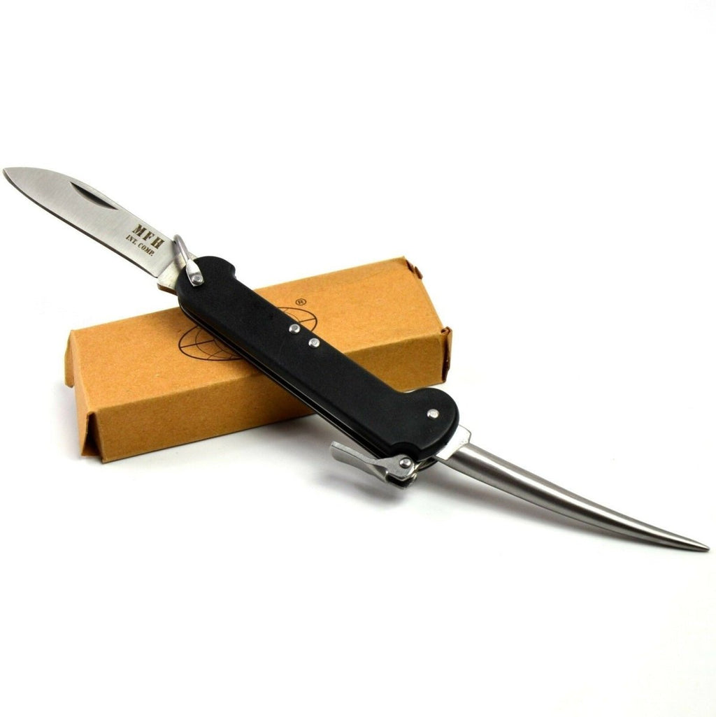 Riproduzione del coltello tascabile della Marina tedesca della ditta MFH. Il Marlinspike ha un sistema di blocco di sicurezza e un anello per cordino. Questo strumento può essere utilizzato per sciogliere nodi difficili, il coltello è particolarmente apprezzato dai marinai.