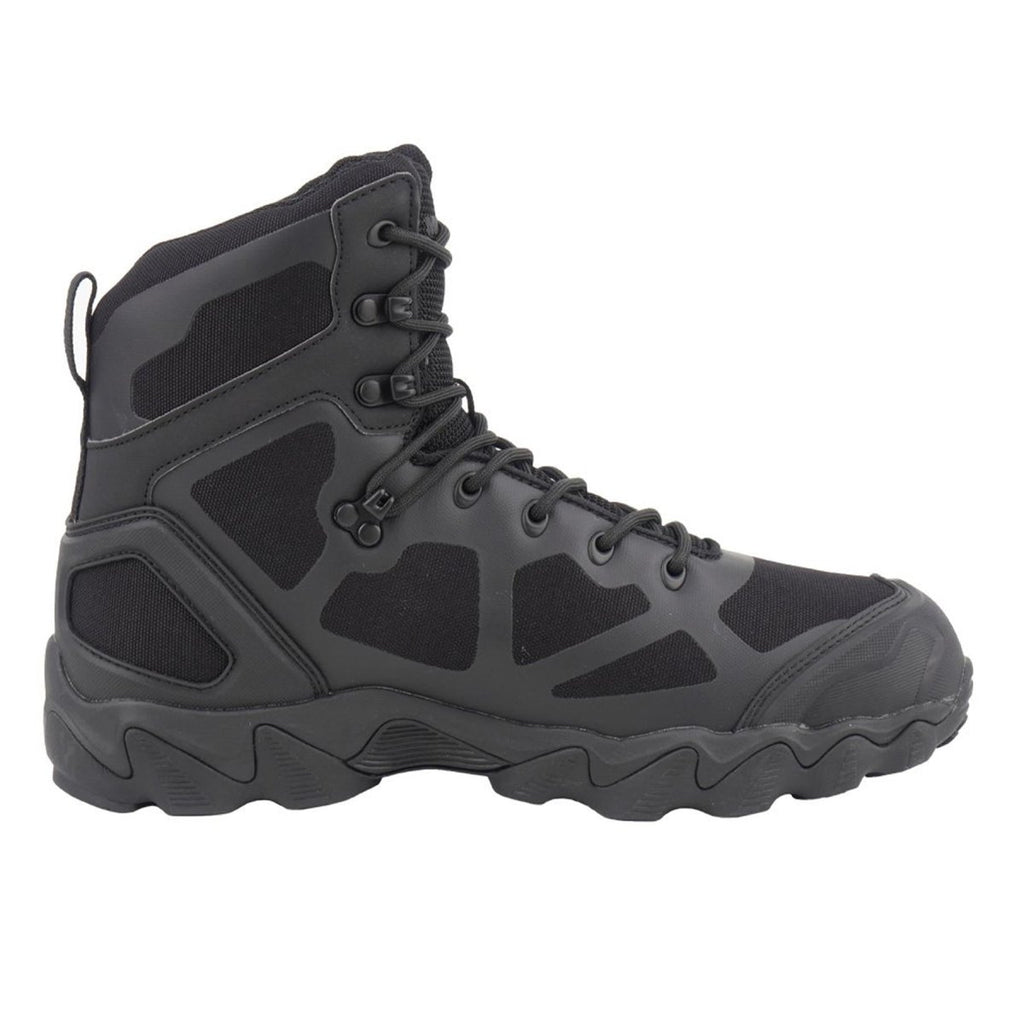 Gli scarponi da trekking neri Chimera del marchio MIL-TEC vantano un design meticoloso ottimizzato per il combattimento, il trekking e varie attività all'aperto.