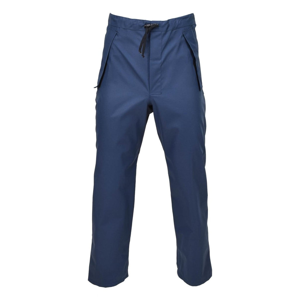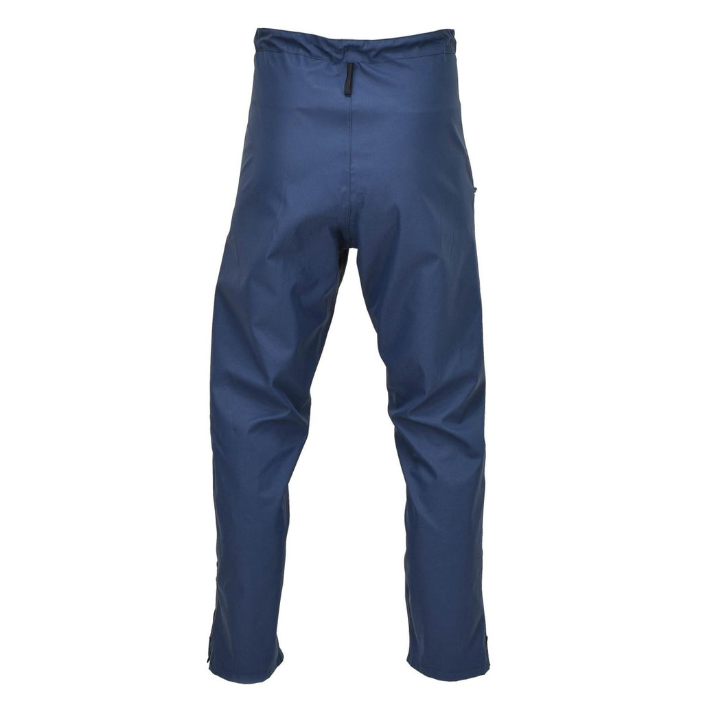 I pantaloni impermeabili originali della Royal Air Force britannica sono un tipo di pantaloni militari in eccedenza progettati per fornire protezione dalle condizioni atmosferiche umide. Sono di colore blu e sono stati originariamente progettati per essere utilizzati dalla Royal Air Force (RAF). I pantaloni sono dotati di una membrana permeabile al vapore acqueo (MVP), che consente traspirabilità e controllo dell'umidità mantenendo asciutto chi lo indossa. Hanno anche una struttura impermeabile e un design durevole, con caratteristiche come polsini regolabili e tasche multiple.