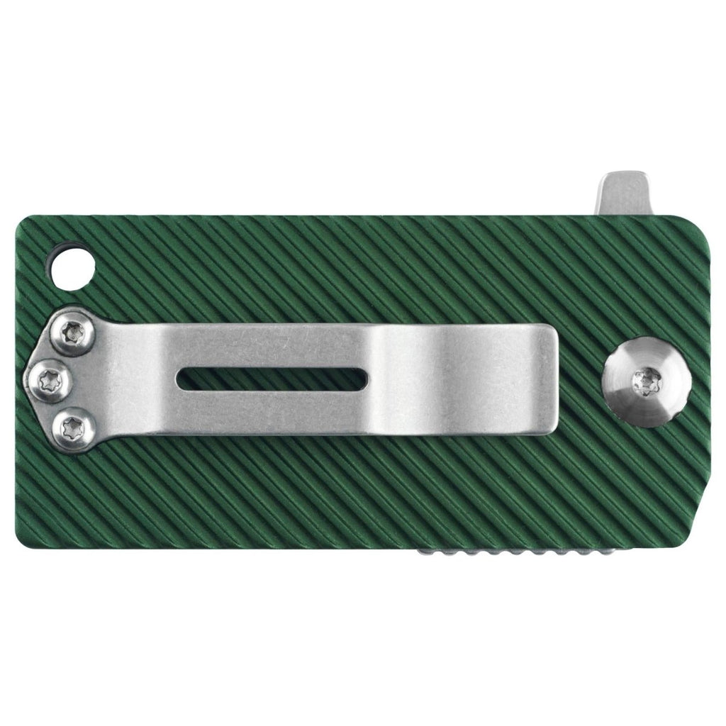 - IL maniglia in alluminio verde oliva aggiunge entrambi forza e stile. Fornisce un presa salda e ti senti sicuro in mano, anche in condizioni di bagnato o freddo. Puoi tenerlo comodamente per lunghi periodi senza perderlo controllo o precisione. Quella della maniglia finitura anodizzata inoltre migliora durabilità e crea a aspetto pulito e tattico che si distingue dai normali coltelli tascabili.