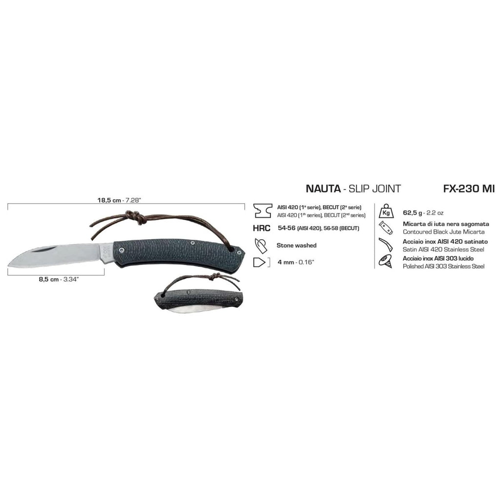 Se hai bisogno di uno strumento affidabile per trasporto quotidiano o sfide all'aria aperta, IL Coltello chiudibile NAUTA Fox Knives consegna qualità, robustezza e versatilità. È un compagno affidabile per chiunque apprezzi a coltello tattico compatto che funziona costantemente in ogni situazione.