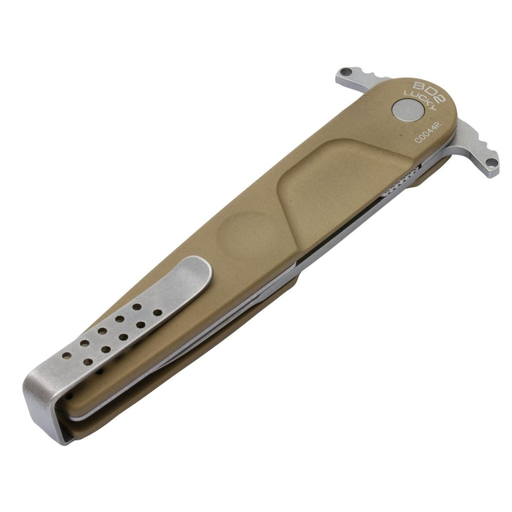 IL Coltello chiudibile ExtremaRatio BD2 LUCKY DESERT è un coltello tascabile affidabile e ad alte prestazioni progettato per uso tattico e quotidiano. Suo Lama in acciaio Bohler N690 a filo liscio offerte eccezionale nitidezza, ritenzione dei bordi e durata.