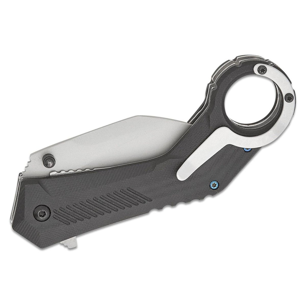 - La lama, realizzata in premium Acciaio inossidabile 440C, taglia senza intoppi e resiste alla corrosione. Il suo becco di falco curva migliora la precisione e il controllo del taglio, rendendo ogni taglio veloce e pulito. La pietra lavata fine protegge la lama e le conferisce un aspetto robusto e professionale.