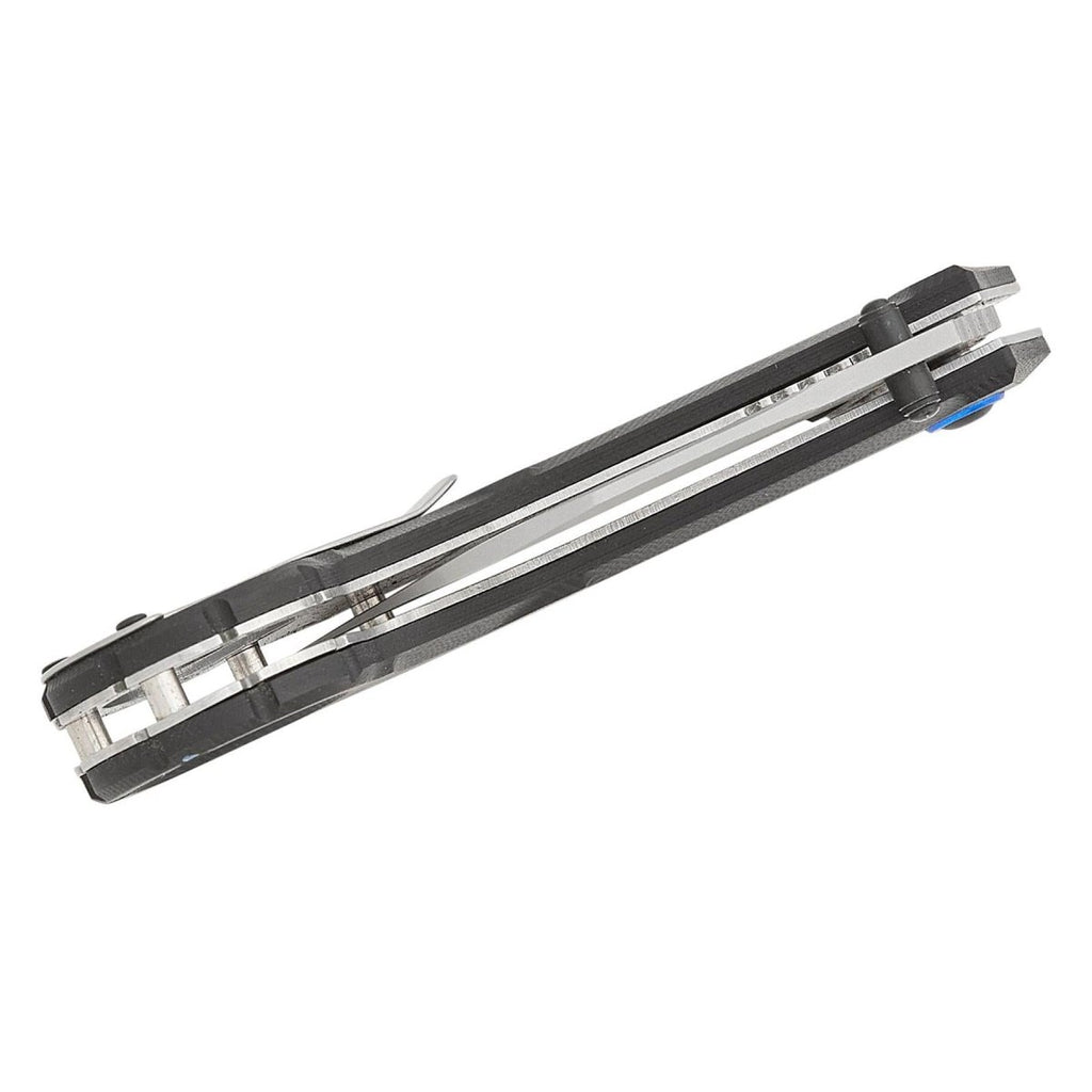 - IL Maniglia G10 sembra solido e sicuro nella tua mano. I dettagli strutturati migliorano la presa anche in situazioni bagnate o stressanti. Le linee d'accento blu aggiungono un tocco di stile moderno, dimostrando che funzionalità e design possono lavorare insieme. IL blocco della fodera mantiene la lama ferma durante l'uso, mentre il anello da dito fornisce stabilità e maneggevolezza.