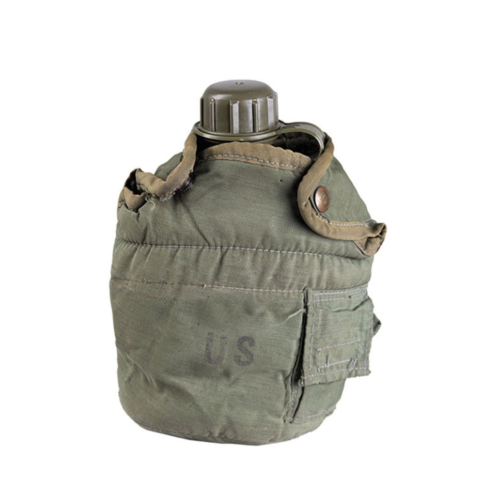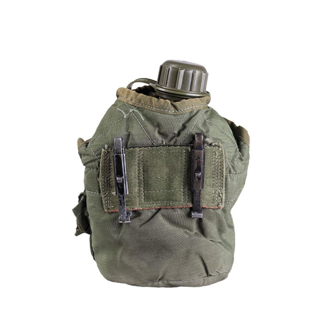 Questa borraccia originale militare americana in plastica da 0,75 litri con copertura per attrezzatura da campo è un vero e proprio articolo di idratazione dell'esercito progettato per un uso affidabile in ambienti esterni e sul campo. Il set comprende una borraccia in plastica e una copertura in tessuto resistente, rifinita nel classico colore oliva tipico dell'equipaggiamento militare statunitense.