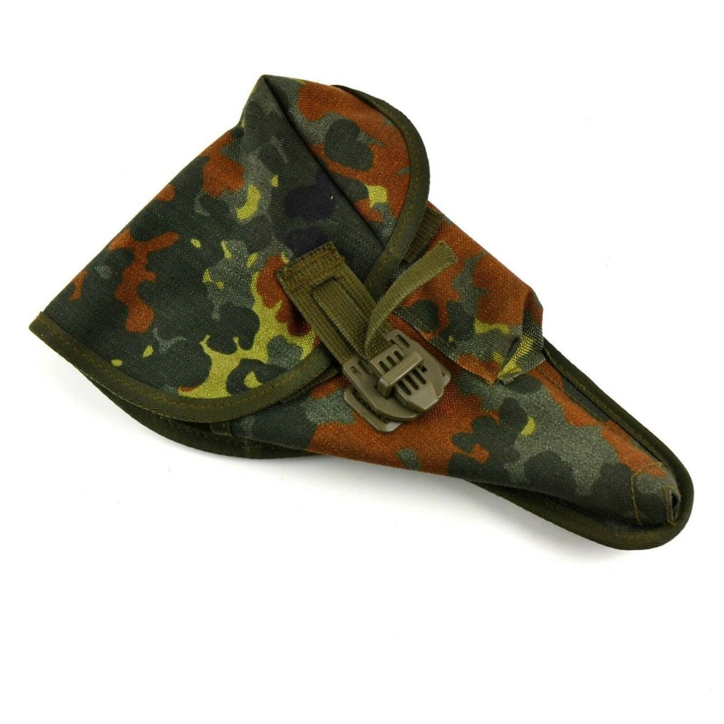La fondina per pistola Flecktarn è un accessorio essenziale per chiunque abbia bisogno di riporre in modo affidabile le armi da fuoco. Questa fondina per pistola originale dell'esercito tedesco presenta un design durevole costruito per soddisfare gli standard militari. La fondina è ideale sia per uso tattico che come oggetto da collezione.