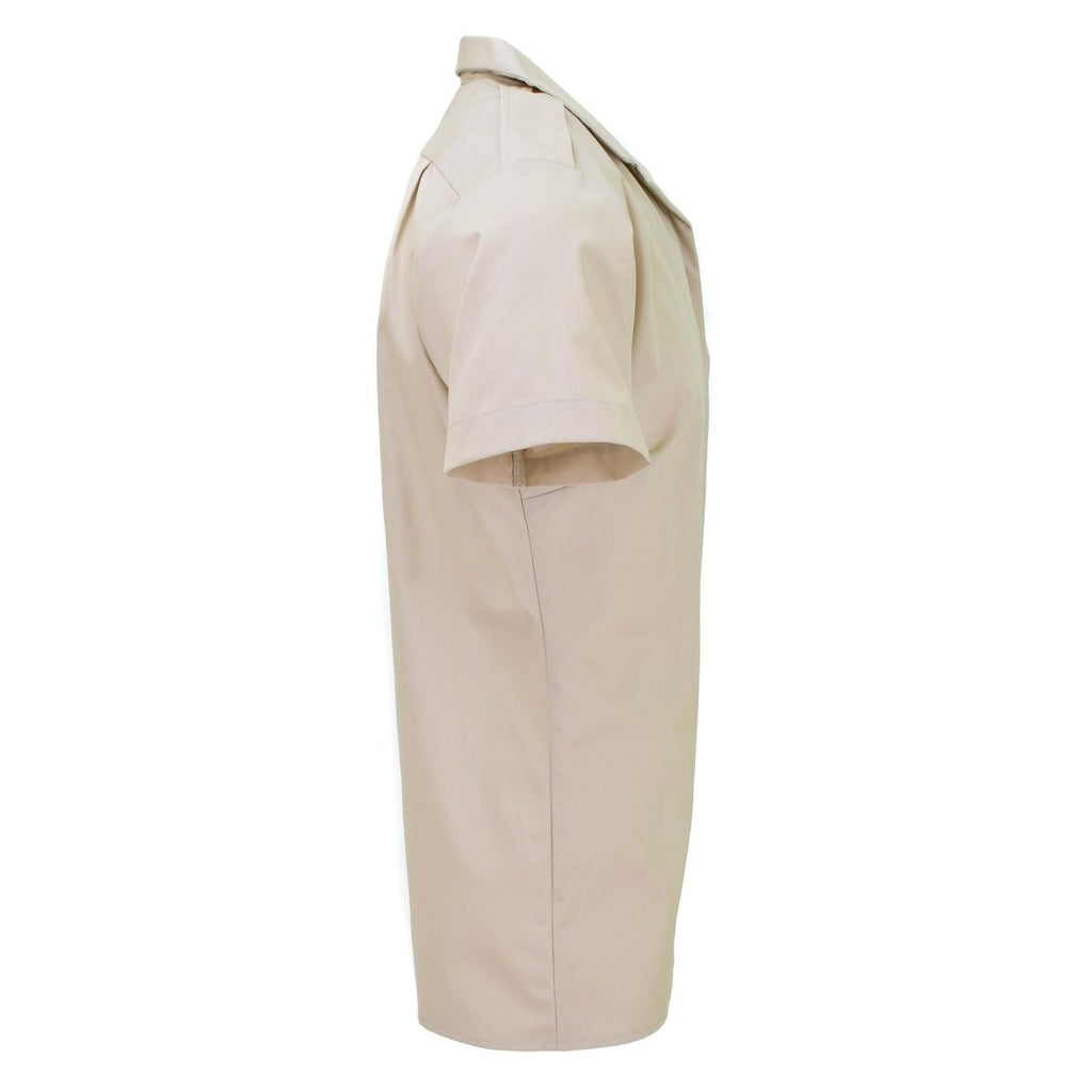 Una camicia formale delle donne militari britanniche in colore kaki è una camicia a maniche corte indossata da donne soldate nell'esercito britannico. È progettato per essere indossato in occasioni formali ed è realizzato con materiali durevoli e di alta qualità che possono resistere alle esigenze del servizio militare. Il colore kaki è un tono sottomesso e terroso che viene spesso usato in uniformi militari. Questo tipo di camicia è adatto per abbigliamento ufficiale e casual.