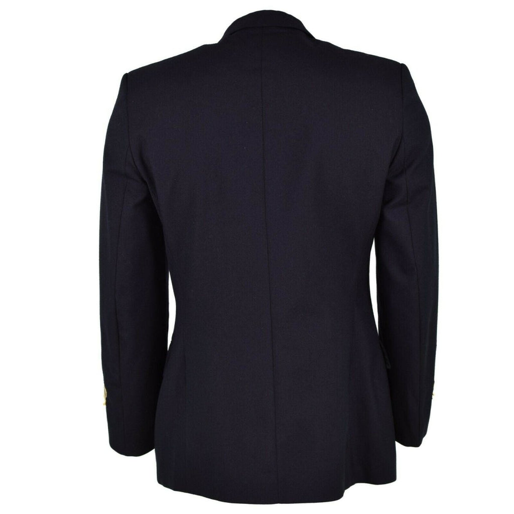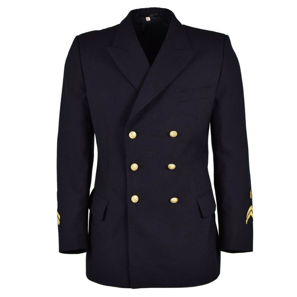 • Inoltre, il design a doppio petto della giacca con bottoni dorati trasuda raffinatezza. Questi dettagli eleganti rendono la giacca blu un capo di spicco in ogni guardaroba. Le pratiche tasche, comprese le tasche sul petto, laterali e interne, offrono un comodo spazio per i tuoi oggetti essenziali. Inoltre, le distintive insegne militari sulle maniche aggiungono un tocco autentico, riflettendo la tradizione della giacca.