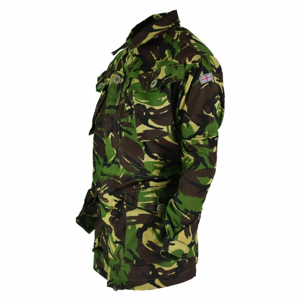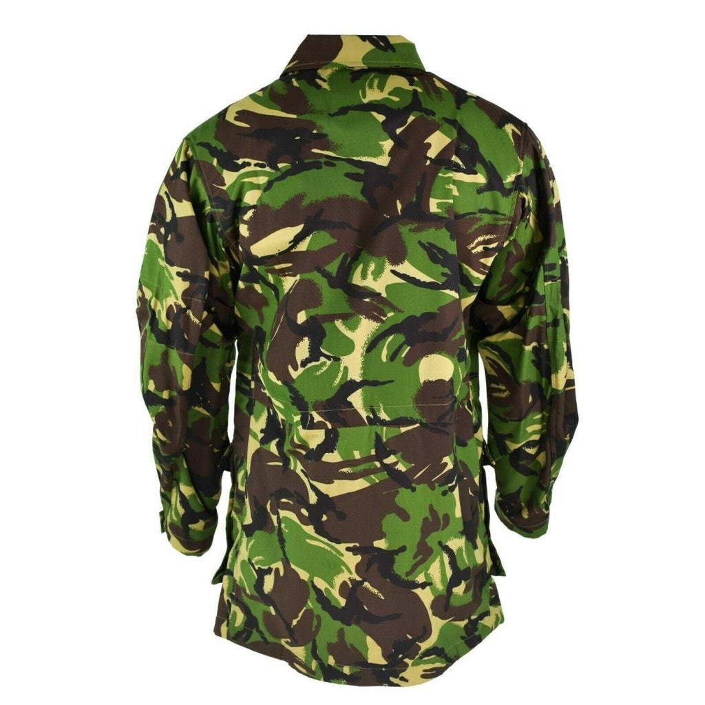 La giacca grembiule mimetica per boschi DPM (Disruptive Pattern Material) dell'esercito britannico è una giacca standard utilizzata dalle forze armate britanniche. È progettato per mimetizzarsi negli ambienti boschivi ed è realizzato con un materiale durevole e resistente all'acqua.