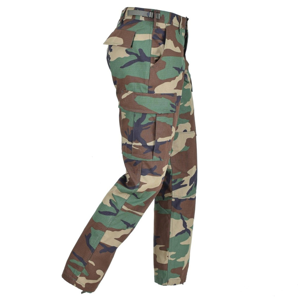 Presentazione dei pantaloni bdu da bosco in stile militare americano del marchio MIL-TEC in mimetica boschiva. Questi pantaloni rispecchiano lo stile iconico dei pantaloni dell'esercito americano.