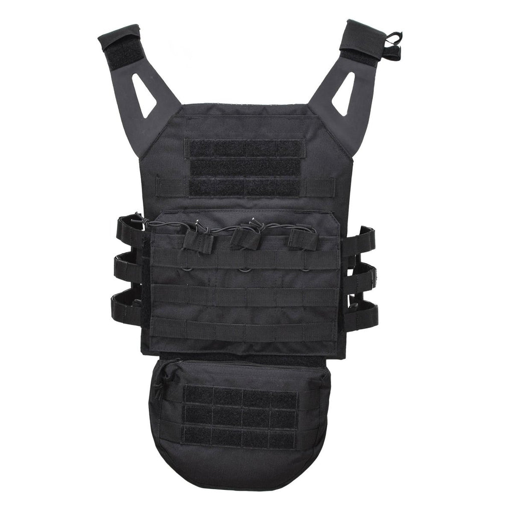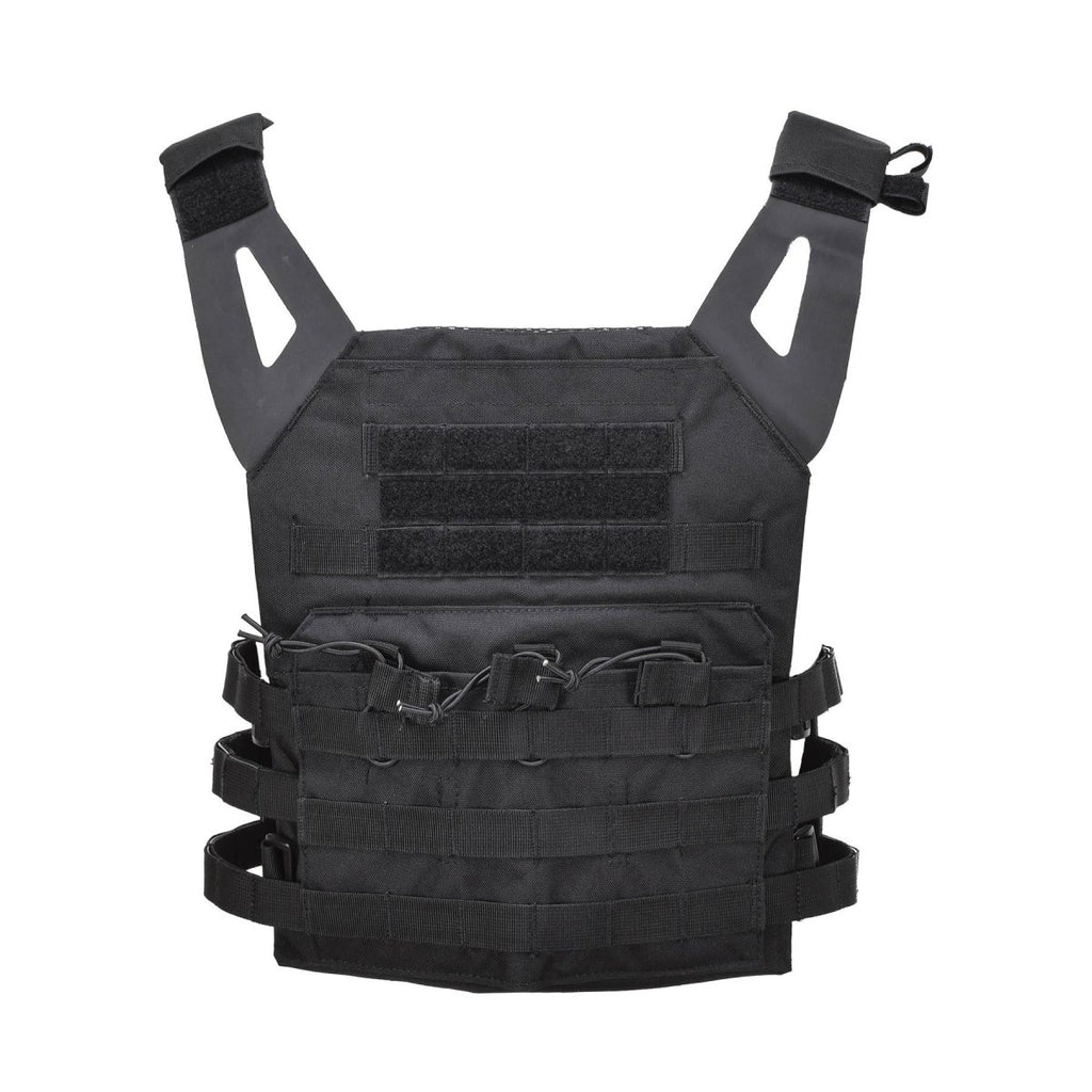 - Ma aspetta, c'è di più! Il nostro gilet portapiatti nero vanta punti di attacco aggiuntivi e fettuccia MOLLE. Ciò consente una facile personalizzazione, permettendoti di attaccare attrezzi come borse per munizioni o kit di pronto soccorso. L'adattabilità è fondamentale e questo gilet lo offre a palate.