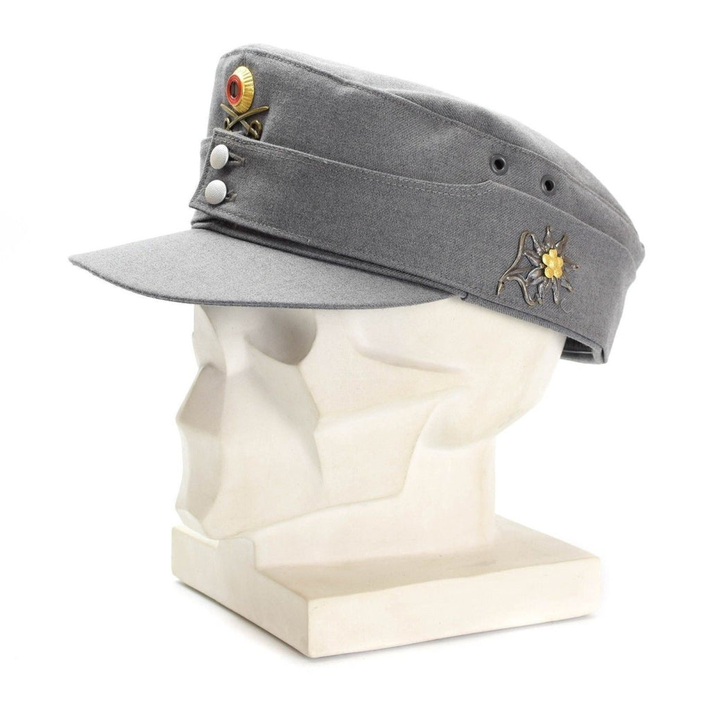 Presentiamo l'originale berretto da montagna militare dell'esercito tedesco Gebirgsjäger, un berretto unico con patta sul collo. Ciò evidenzia il ricco patrimonio delle truppe di montagna tedesche. Questo berretto con patta sul collo non solo offre una funzionalità eccezionale, ma rende anche omaggio alla illustre storia del Gebirgsjäger.