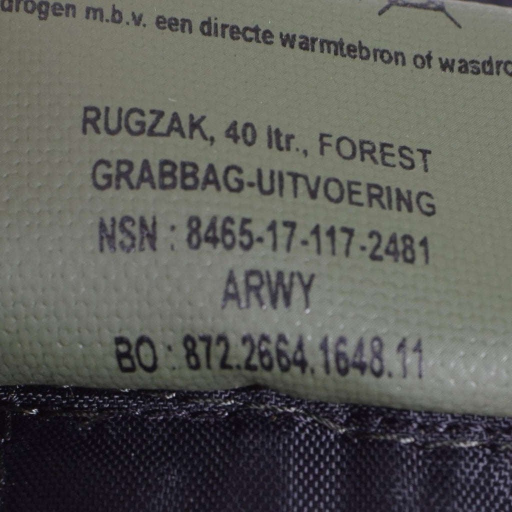 - Lo zaino Woodland Issue dell'esercito olandese offre una capacità di 40 litri, offrendo ampio spazio per trasportare l'attrezzatura essenziale. Le fibbie a sgancio rapido rendono l'accesso alla tua attrezzatura facile e veloce. La cintura sui fianchi offre supporto, aiutando a distribuire il peso per un maggiore comfort, soprattutto durante le lunghe camminate. Gli spallacci imbottiti riducono la pressione e aumentano il comfort durante l'uso prolungato.