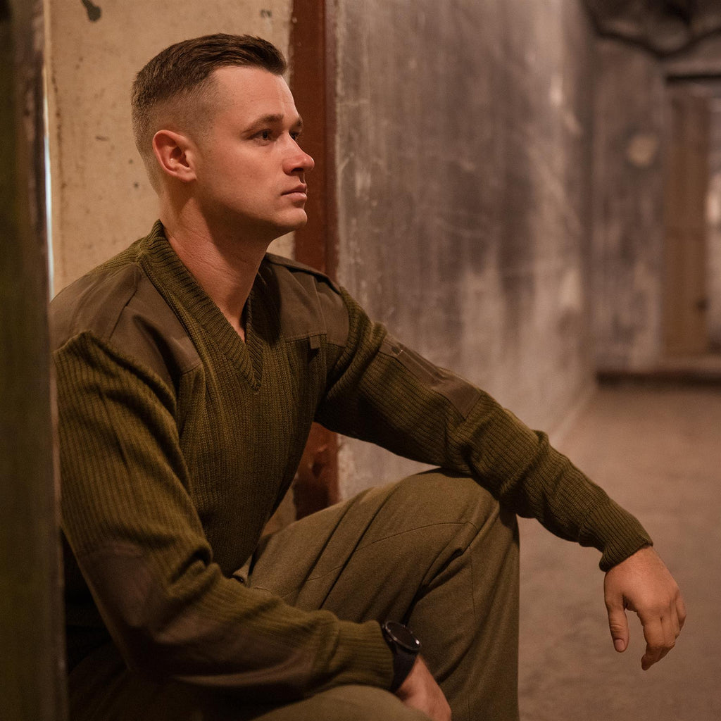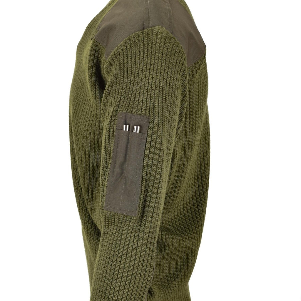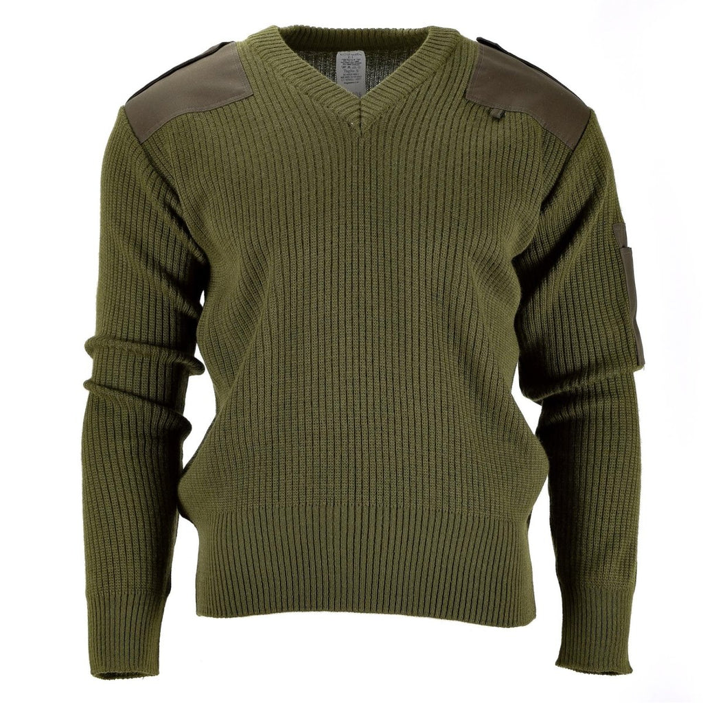 Il maglione militare a V in colore olivo è un capo versatile e resistente, perfetto per coloro che amano le attività all'aperto.