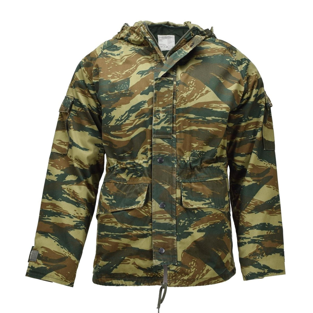 La giacca presenta un classico taglio da parka da campo M65 ed è dotata di una fodera rimovibile, che consente un utilizzo adattabile in diverse condizioni atmosferiche. Un cappuccio integrato fornisce una protezione aggiuntiva dal vento e dalle temperature più fresche. Il caratteristico motivo mimetico della lucertola greca conferisce alla giacca il suo autentico aspetto militare.