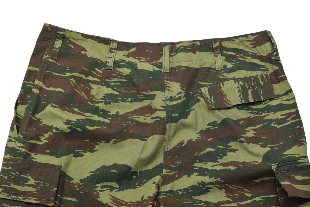 Questi pantaloni da campo BDU militari greci originali in mimetica lucertola sono autentici pantaloni militari in eccedenza progettati per durabilità e uso pratico sul campo. Emessi come parte dell'uniforme da battaglia dell'esercito greco, presentano un taglio classico adatto sia per ambienti militari che esterni.