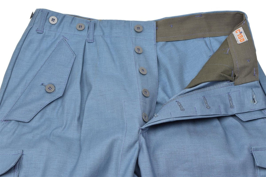 Presentiamo i versatili pantaloni svedesi M59, autentici pantaloni militari costruiti per resistenza e funzionalità. Questi pantaloni blu stile cargo vantano ginocchia rinforzate, ideali per avventure all'aria aperta come l'escursionismo e il campeggio.