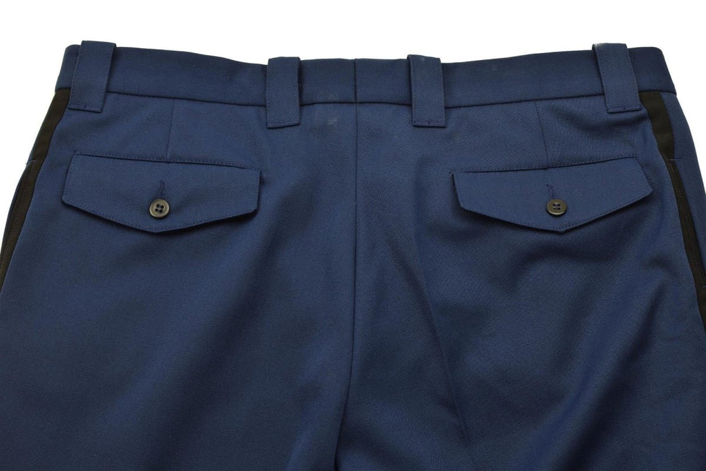 - Questi pantaloni militari blu scuro sono dotati di chiusura con zip e comode tasche all'americana, che aggiungono comfort e funzionalità. Progettati con materiali di alta qualità, questi pantaloni sono disponibili in due opzioni di tessuto. Una versione combina 55% poliestere e 45% lana, mentre l'altra presenta 60% lana e 40% poliestere. Entrambe le opzioni includono una fodera in poliestere al 100%, che garantisce resistenza e vestibilità comoda.