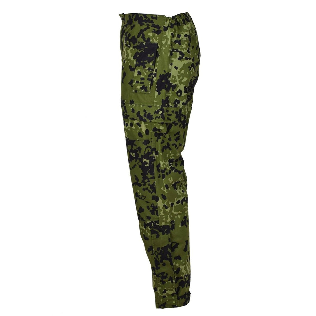 Ti presentiamo i pantaloni antipioggia M84 mimetici militari originali danesi, la tua soluzione ideale per i pantaloni antipioggia in eccedenza militare.