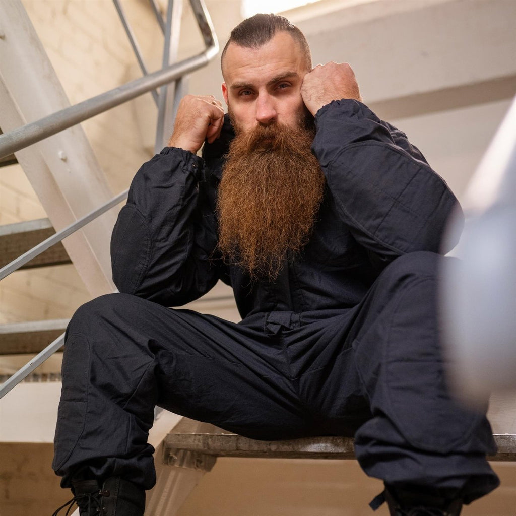 Questo abito da copertura con cappuccio e cerniere è una tuta originale della polizia nera della polizia militare britannica. È progettato con caviglie e polsini regolabili, ginocchia e gomiti rinforzati e realizzato in materiale resistente all'acqua, resistente alla fiamma per la massima protezione e durata.