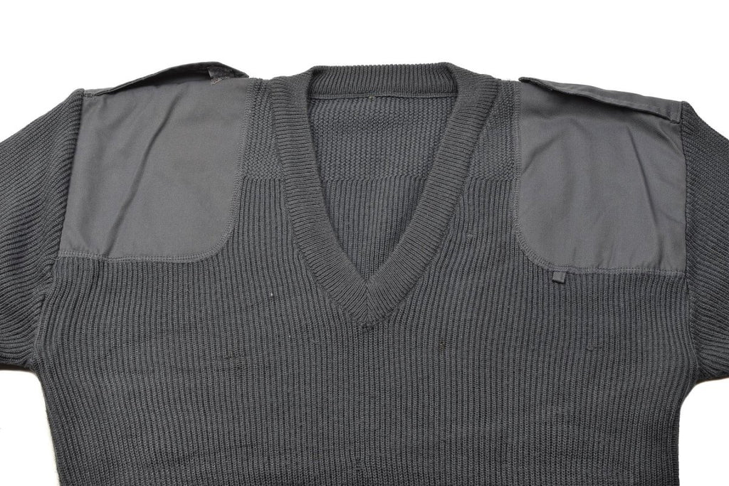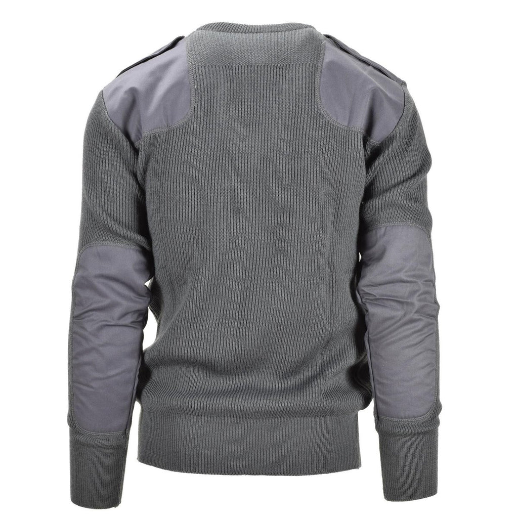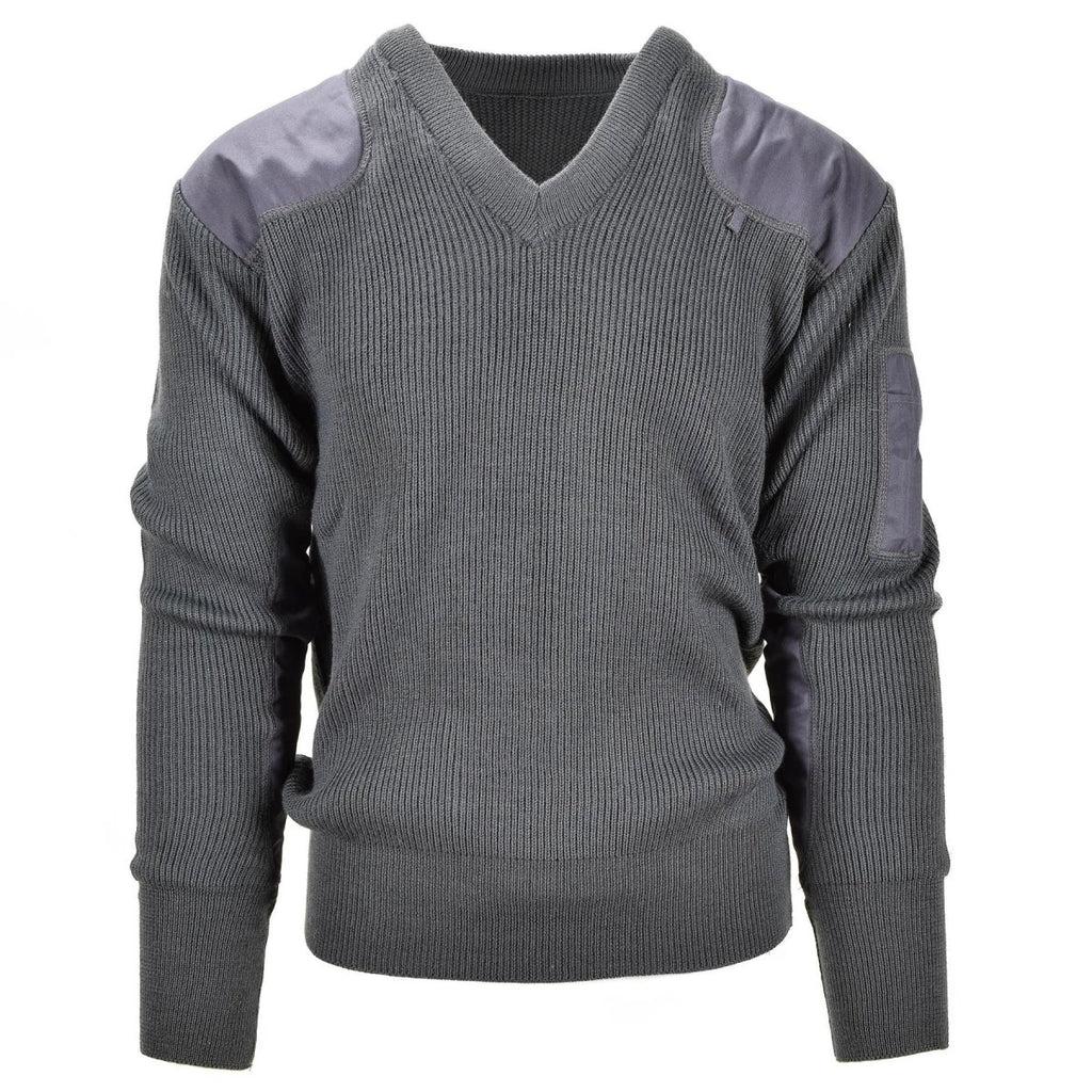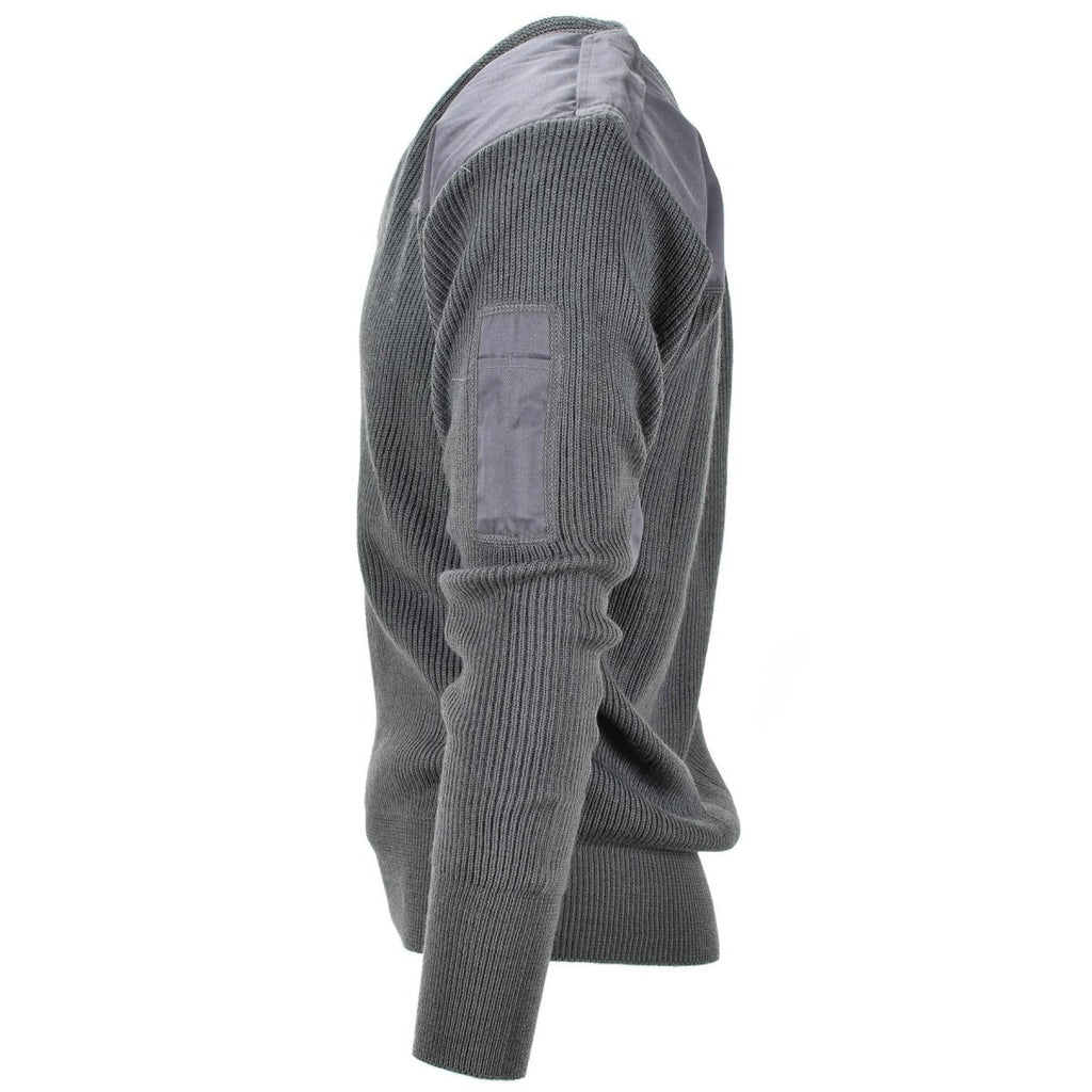 Maglione Commando con scollo a V in lana grigia militare italiana con gomiti rinforzati