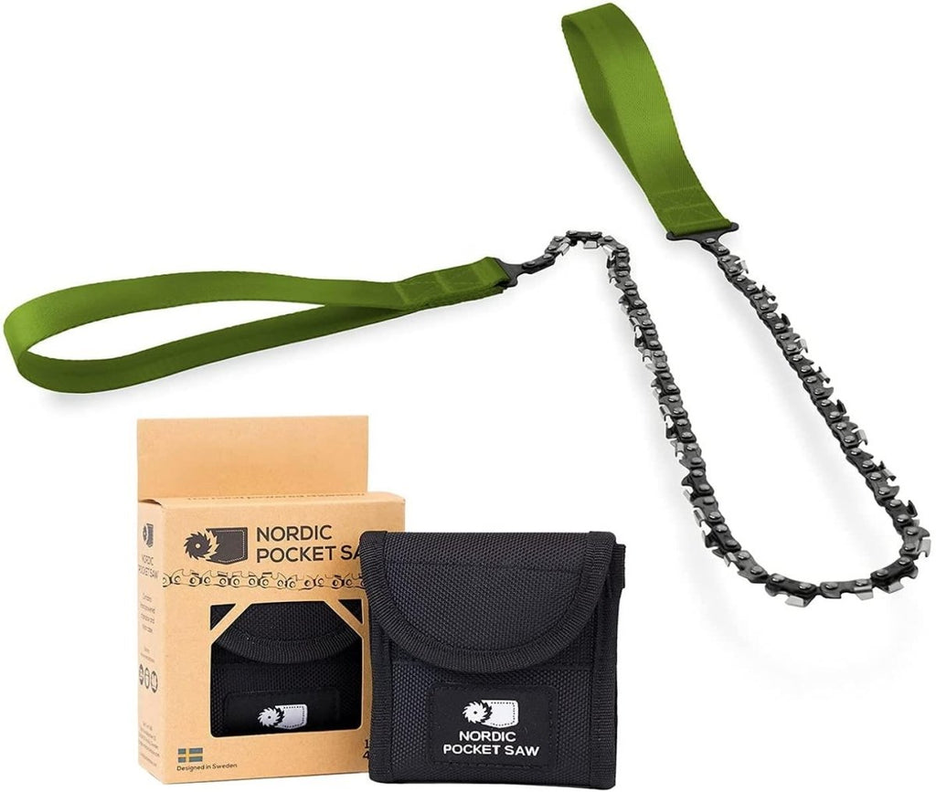Leggero, alta confezione e potenza grezza. Questo è ciò che indica la sega a tasca nordica compatta a mano e lo rende un compagno essenziale per le tue avventure all'aperto. La catena è realizzata in acciaio al carbonio ad alto contenuto di calore che è ideale per le lame e appositamente sviluppata per la resilienza in condizioni difficili. Le maniglie in nylon pesante sono estremamente resistenti e danno una presa comoda e sicura anche se bagnate. La custodia può essere indossata sulla cintura per un facile accesso o riportato nello zaino.