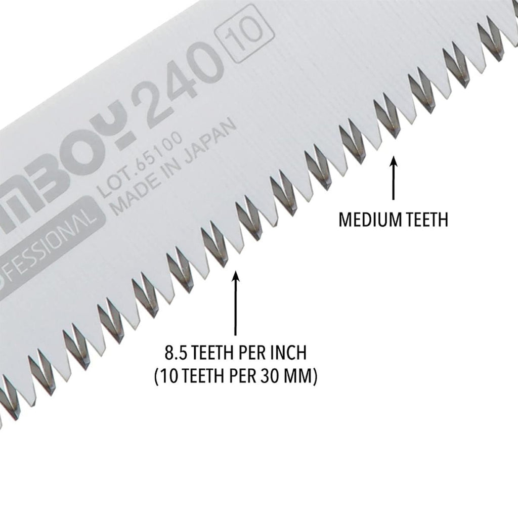 - La lama in acciaio inossidabile da 240 mm presenta 10 denti ogni 30 mm, garantendo ogni volta tagli puliti. Questa sega offre prestazioni superiori, rendendola uno strumento essenziale per qualsiasi appassionato di outdoor.