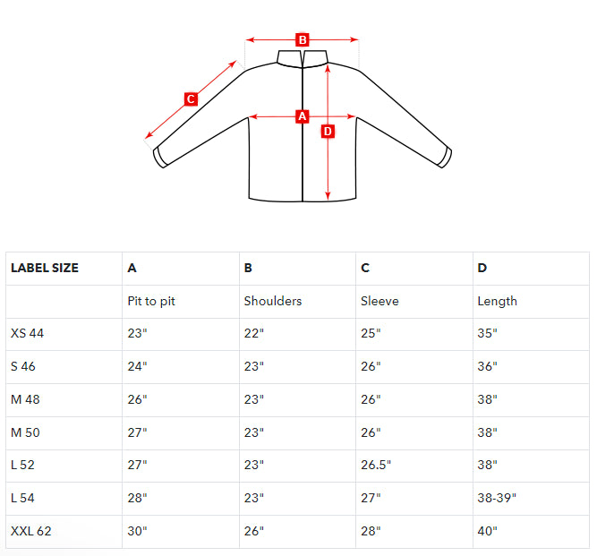 Buca per fossa | Spalle | Manica | Lunghezza | |