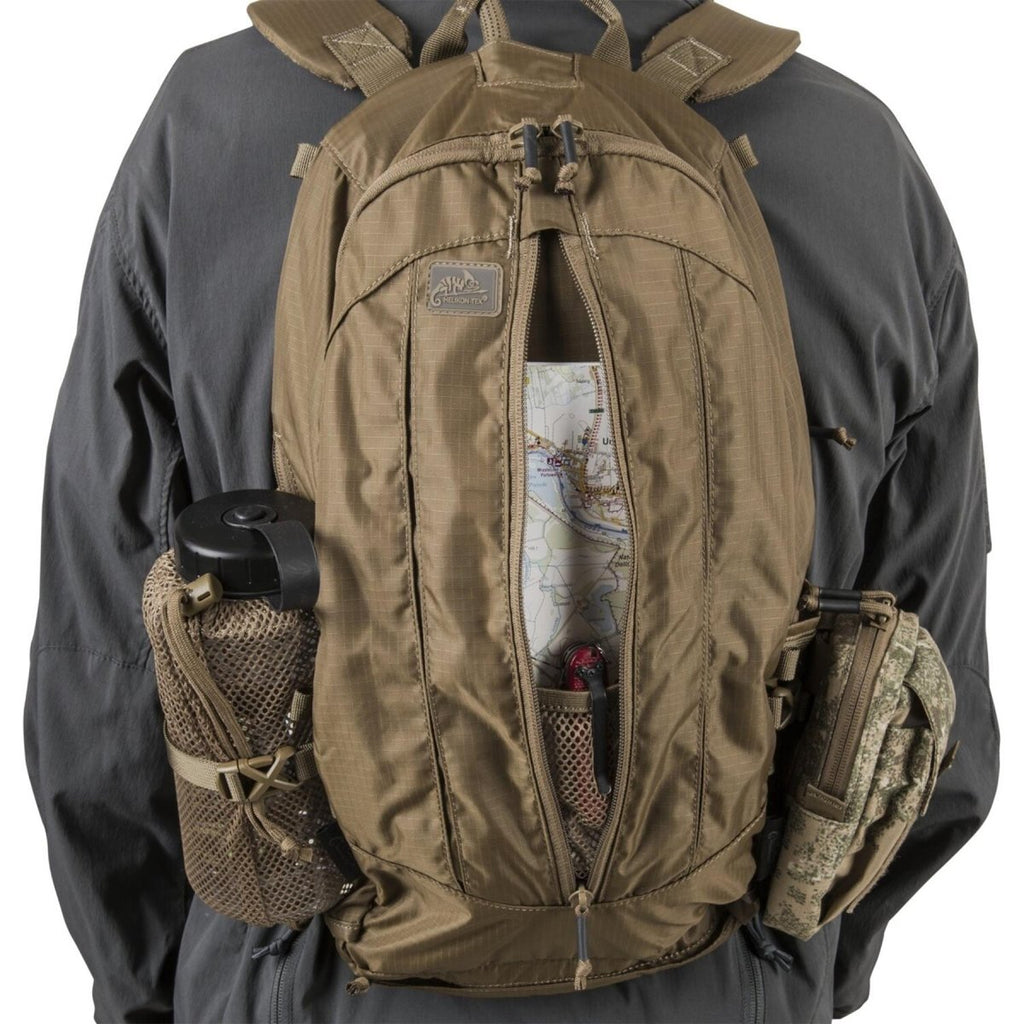 - Lo zaino da 10 litri include fettuccia MOLLE Lite sui lati. Questa funzione ti consente di attaccare facilmente borse e accessori extra. La spaziosa camera principale include un gancio per una sacca di idratazione, così rimani idratato durante le attività. Inoltre, la tasca frontale espandibile è dotata di cerniera verticale per un accesso rapido e spazio di archiviazione aggiuntivo.